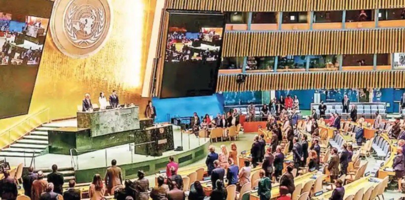 La Asamblea General de las Naciones Unidas adoptó la Declaración de Nueva York, un texto de siete páginas impulsado por Francia y Arabia Saudita que busca reactivar la solución de dos Estados, israelí y palestino, resolución que fue aprobada por 142 votos a favor, 10 en contra y 12 abstenciones.